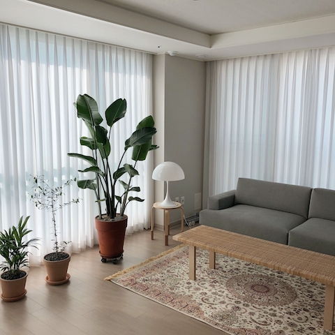 봄에 이어 가을은 결혼을 준비하기 좋은 계절이라 요즘 주변에서 행복한 소식이 많이 들려옵니다. 경우에 따라서는 모든 부분에서 충분하지 않은 신혼집 꾸미기~ 하지만 사랑하는 두 사람이 드디어 한 둥지에서 생활할 수 있다는 것만으로도 모든 것이 행복한 때가 아닌가 싶습니다. 오늘 소개해드릴 2.5룸 아파트는 원래 2룸이었던 공간을 숨기고 커튼으로 분리해 침실을 만든 공간분리 아이디어가 돋보입니다. 좁은 집에서 플러스 공간이 필요할 때 가벽이나 벽체 공사 대신 커튼 소재를 이용하면 경제적으로 쉽게 공간을 분리할 수 있습니다. 같이 홈투어를 시작해볼게요!