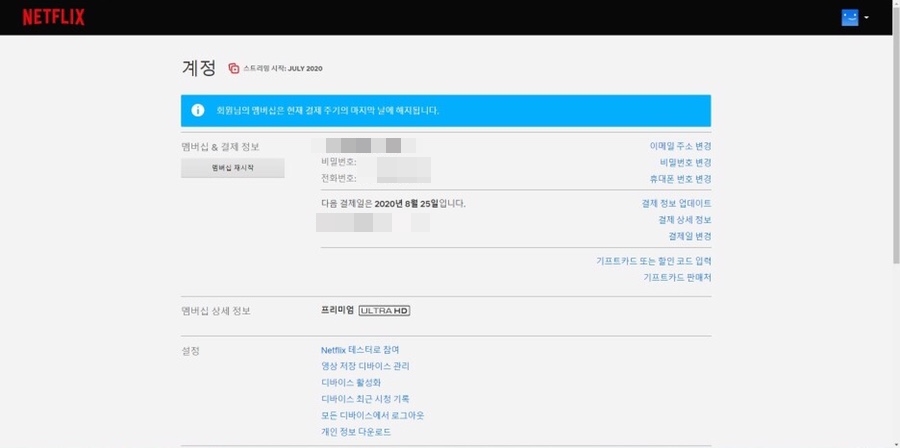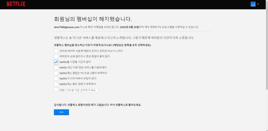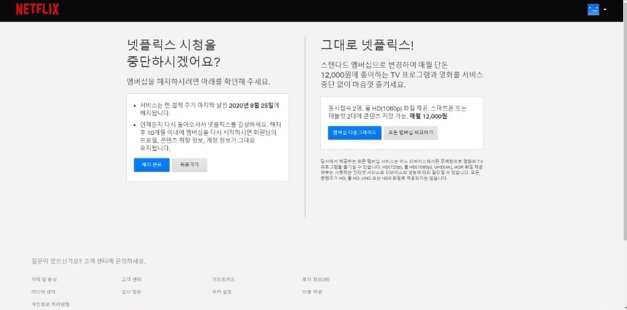 해지 방법은 일단 pc로 넷플릭스에 들어가세요.(모바일앱에서는 해지 불가/pc가능)