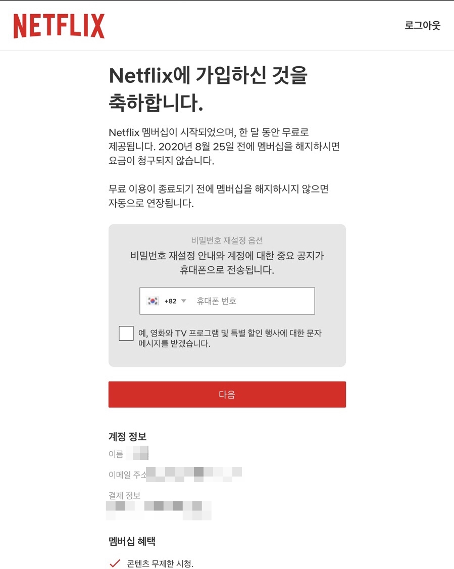 넷플릭스 1개월 무료체험 및 자동요금 청구 해지 방법