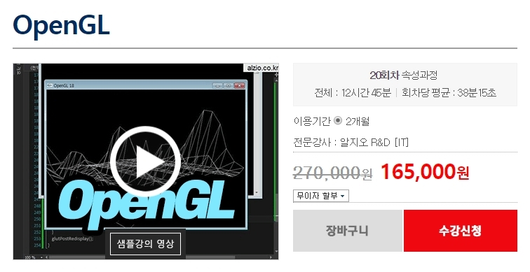 최근에 제가 관심을 가졌던 분야를 좀 더 세밀하게 배워보자는 마음이 들었습니다.제가 하고 있는 일과 관련된 일 때문에…뭔가 기술을 잘 가지고 있어야 노후까지 밥 벌어 잘 살 수 있을 거라고 생각했거든요~ 그렇게 고민하다가 회사 선배님한테 OpenGL 추천을 받았어요.학원을 다니며 익히기보다는 독학으로 해보려고 온라인 강의를 들을 수 있는 곳을 찾았습니다!그렇게 찾아보고 알게 된 곳이 아르지오래요.OpenGL 인터넷 강의가 알찬 곳으로 알아봤는데 유명해요.