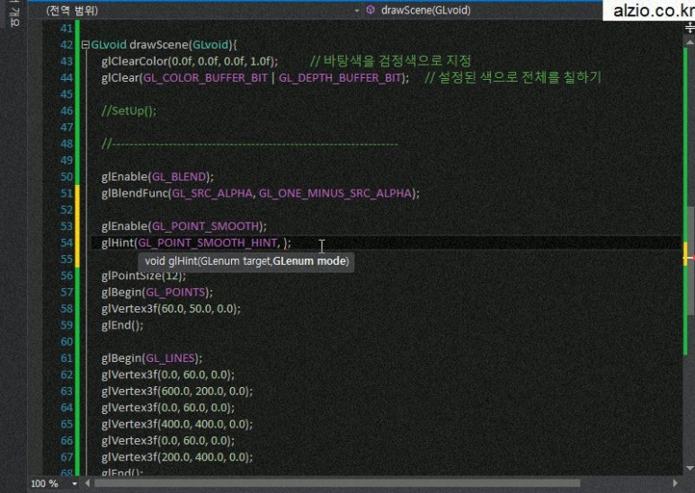 또한 CAD, 정보 시각화, 비행 시뮬레이션, 컴퓨터 게임 등 다양한 분야에서 널리 활용되고 있다는 말에 더욱 믿음이 갔습니다. ~강좌에서 OpenGL의 모든 부분을 배울 수 있습니다.