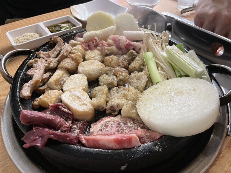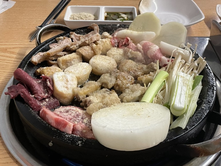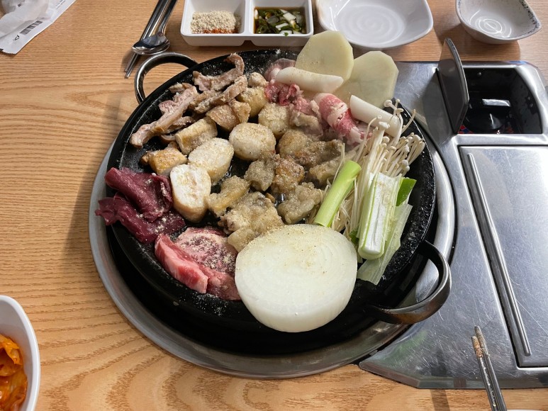 삼겹살도 같이 나오는데 그것도 맛있어여러가지 나오지만 개인적으로는 호르몬이 제일 맛있어.