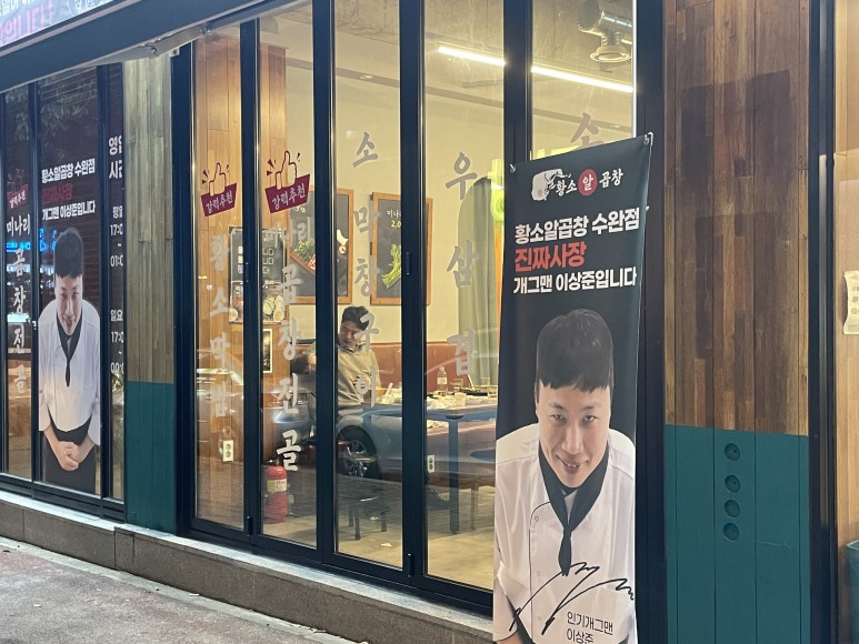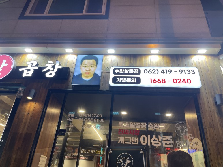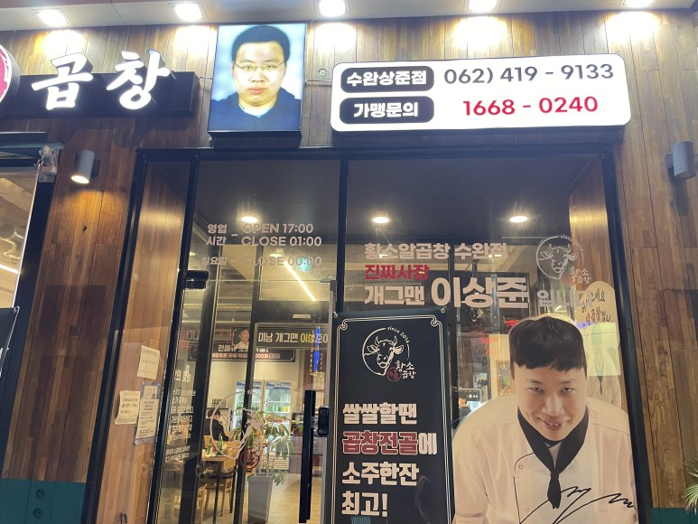 수완지구에 새로 생긴 황소알곱창은 이미 예전 백운동 본점?을 즐겨 갔을 때 알던 곳이다 백운동 사장이 바뀌었는지 맛이 달라졌는지 처음에 많이 다른 맛을 느낀 뒤로는 이후 백운점을 찾지 않았다.그런데 같은 상호 체인점에 수완지구에도 생겼는데 이번에는 사장이 개그맨 이상준이라는 게 이게 아니었다면 여기까지 오지도 않았을 겁니다.굳이 이 먼 곳까지 와서 대리비를 주면서 수완지구에서 곱창을 먹습니다. 웃음