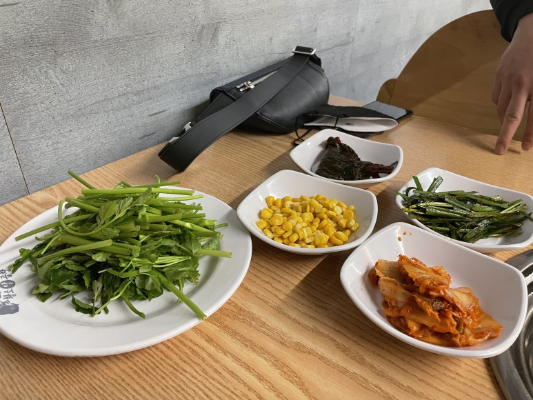 기종찬 나온다.원래 세리가 본점에서도 나왔나 싶은데 내 기억에는 없었던 것 같은데 뭔가 싶다. ㅋㅋㅋㅋㅋ 기본적으로 옥수수, 부추무침, 김치, 깻잎처럼 나온다.