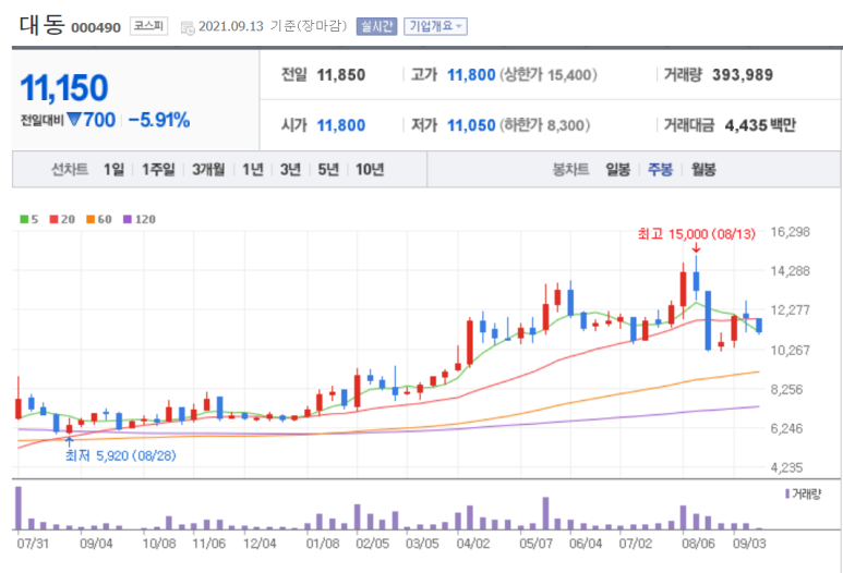대동 주가차트 (주봉)