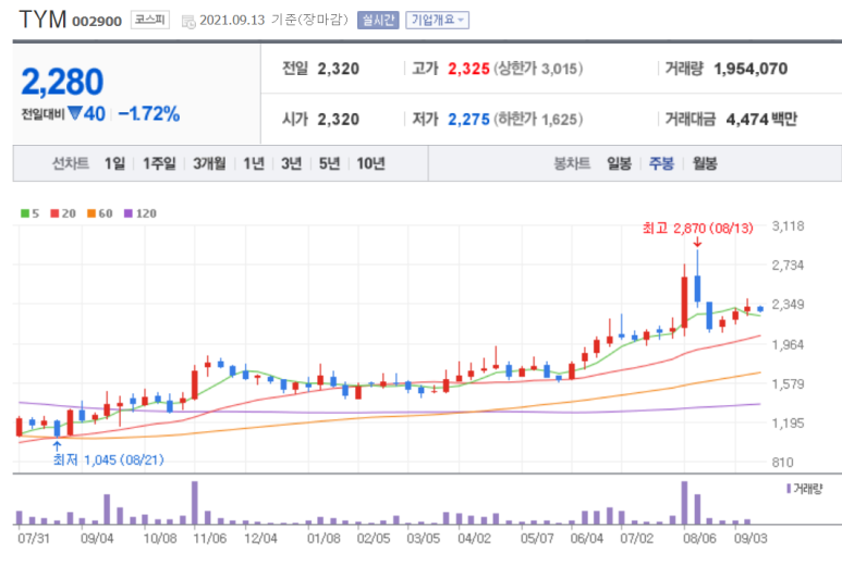 TYM은 현재 코스피에 상장돼 있으며 시가총액은 3200억원 정도입니다.