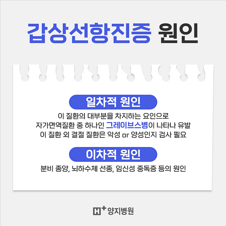 일차적인 원인은 이 질환의 대부분을 차지하는 요인으로 자가면역질환의 하나인 글레이브스병입니다.