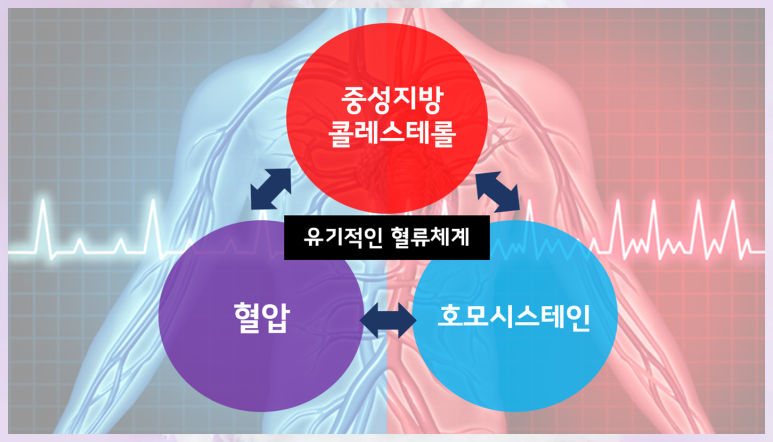 이때전문가들은혈류체계의속성을기반으로한서큘프렉스관리가필요하다고하네요. 결국 콜레스테롤, 중성지방, 혈압, 호모시스템 등의 요소들이 상호작용하는 과정에서 혈관 건강이 점차 나빠지기 때문입니다.