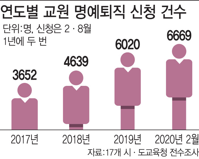 주변 교사들과 이야기를 하면”과연 정년까지 교사 생활을 할 수 있을까?”라는 화두가 자주 떠오릅니다. 나도 정년까지 교사가 되고 싶지만 솔직히 자신은 없습니다. 그러나 정년 퇴직을 해도 당장에 연금이 나오지 않기 때문에 그동안 쓰지 않으면 안 되는 돈을 마련하지 않으면 명예 퇴직을 쉽게 결정하기는 어렵습니다. 요즘 명예 퇴직을 신청하는 교사가 늘어나는 추세입니다. 1997년까지는 소규모로 이루어지고 있었지만 김대중 정부 들어 교원 정년을 65세에서 62세로 낮추는 정책과 맞물리면서 명예 퇴직자 수가 급속히 늘었어요. 2015년도에는 명퇴 신청자만 전국에서 16000여명에 달하며 50%만이 받아들여지지 않았습니다. 이렇게 명예 퇴직자가 꾸준히 늘고 있어 명예 퇴직 교사는 어떤 이유로 명예 퇴직을 신청할까요? 이에 대해서 이하의 논문에서는 다음과 같이 분석하고 있습니다. 강·희경(2016)초등 학교 교사의 명퇴 결정 요소에 대한 해석적 분석, 전주 교육 대학교 석사 학위 논문 첨부 파일 초등 학교 교사의 명퇴 결정 요소에 대한 해석적 분석. pdf파일 다운로드
