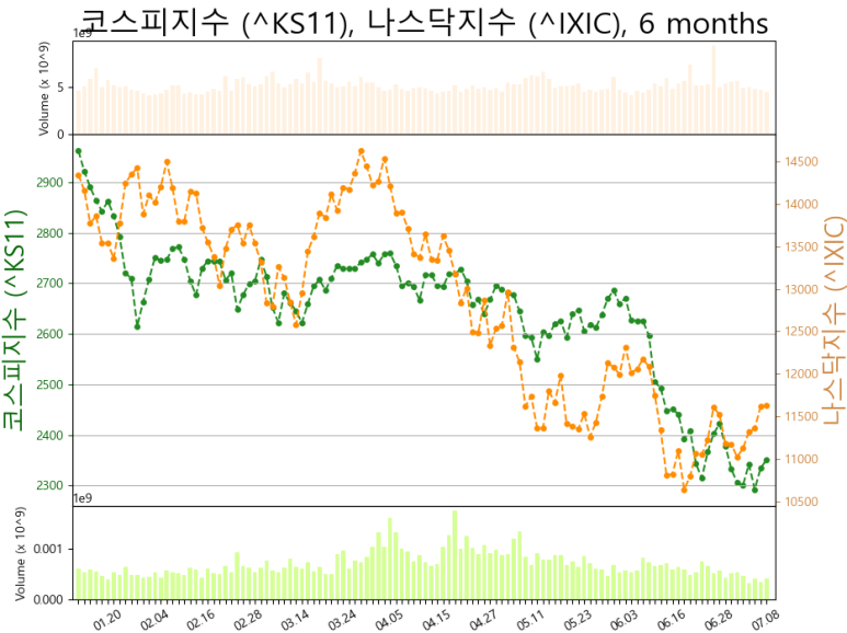 코스피, 나스닥 6개월 지수도 공유합니다.