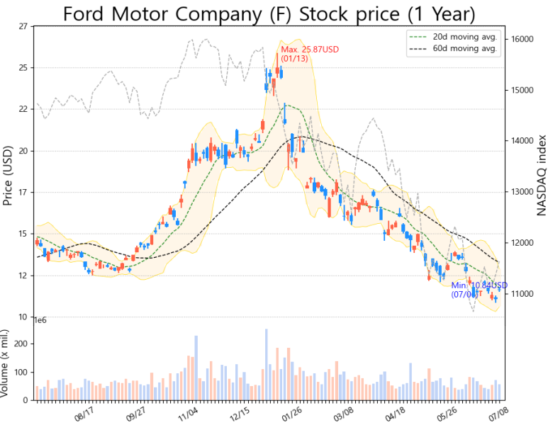 최근 트위터 인수를 포기한 머스크 CEO 테슬라, 미국 완성차 업게포드, GM, 국내 현대, 기아차 주가 차트도 공유합니다.
