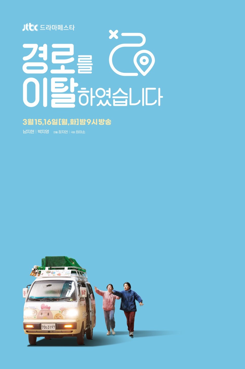 경로를 이탈하였습니다. @JTB C의 패스를 이탈했습니다 정보편성 : JTBC │ 2021.03.15 │ 월화드라마 │ 09:00 │ 2부작 연출 : 장지영 각본 : 최이소 출연진 : 남지현, 박지영 소개 : 결혼식날 뒤통수를 치고 달아난 신랑을 모녀가 함께 쫓는 코믹 추격 로드드라마