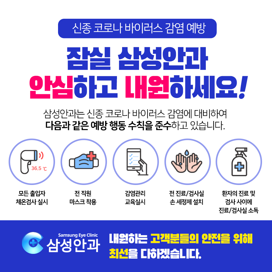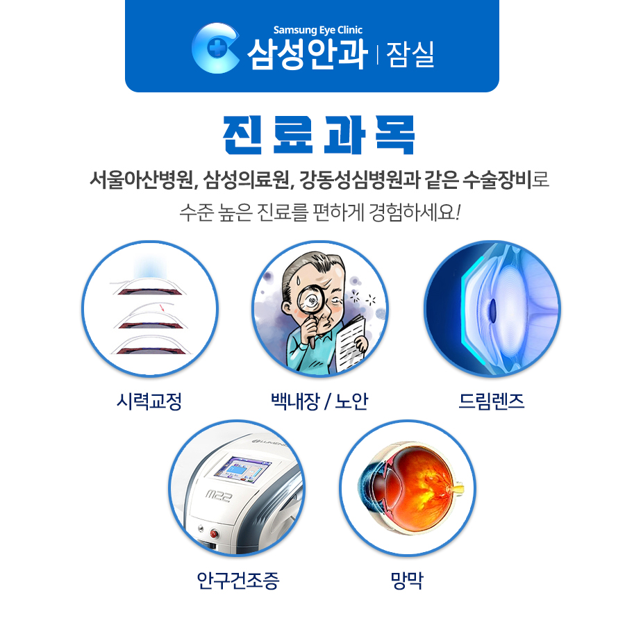 잠실 삼성안과의 모든 수술은 정성과 사랑을 가지고 저희 가족처럼 하겠습니다.