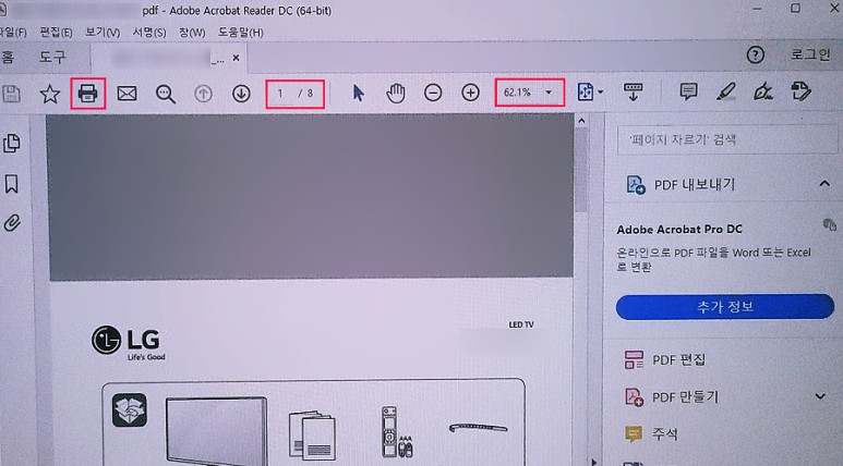 이거 열면 이렇게 화면이 나와요 가운데에서는 이 파일의 구체적인 내용을 볼 수 있고 위에서는 이 문서 파일에 관련된 여러가지 추가 기능들을 이용할 수 있습니다. 보고 싶은 페이지를 설정하는 것부터, 문서 파일이 보이는 사이즈등을 바꾸거나 카피를 하거나 할 수도 있습니다. 이와 같이, 어도비 pdf뷰어 다운로드 및 사용법에 대해 간단하게 소개했습니다.