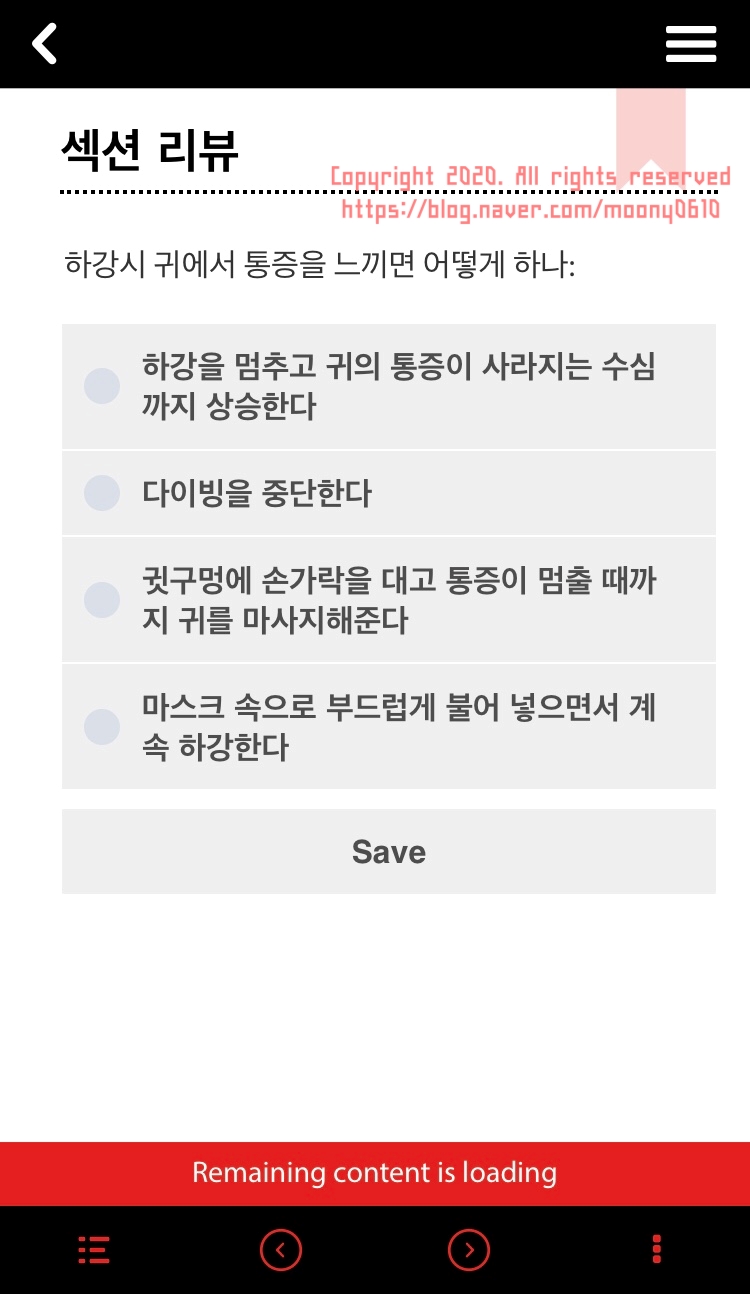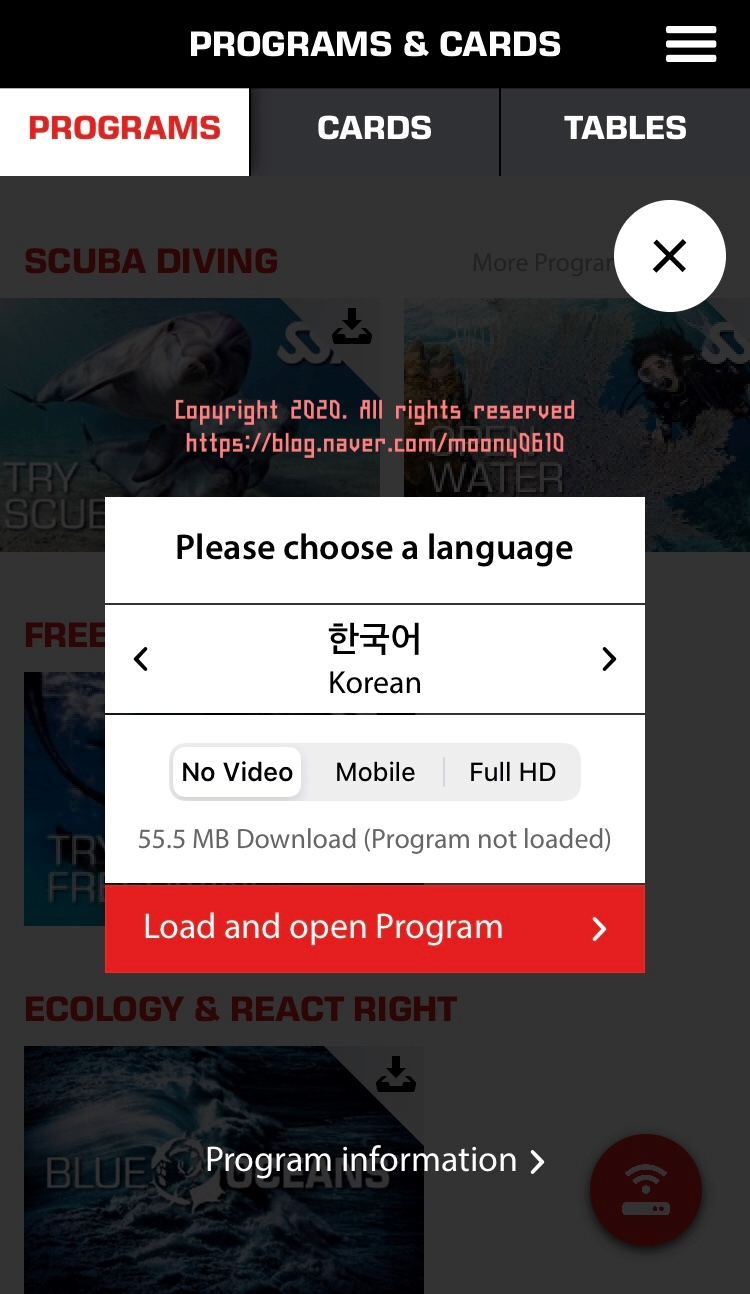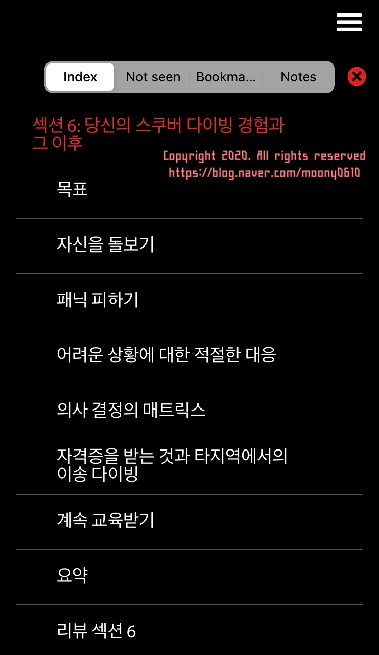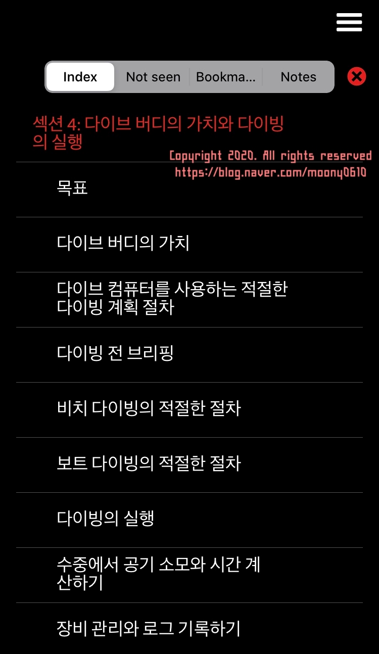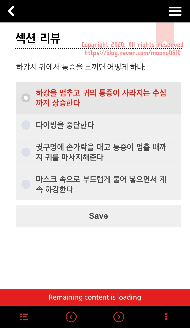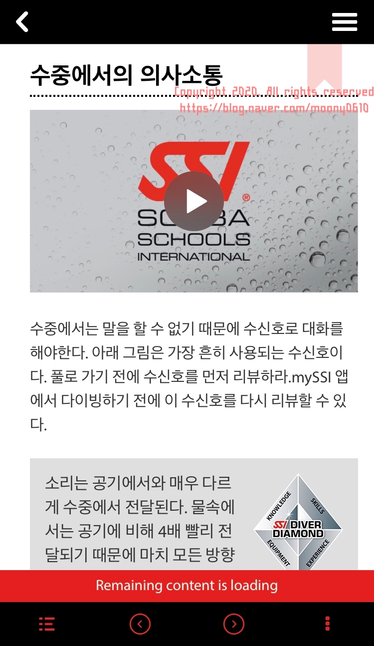 제주도 현지에서 오픈워터 교육을 받기 전 MySSI 어플리케이션에서 미리 교육자료를 받아 공부할 수 있다.