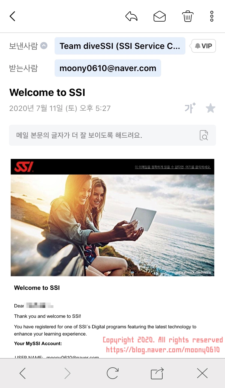 로그인 아이디와 비밀번호는 스쿠버스토리에서 오픈워터를 예약할 때 대표님께 사진과 영문 이름, 이메일 주소 등을 보내드리는데 그러면 대표님께서 교육장소(트레이닝센터 번호)와 오픈워터 교재를 신청하시면 됩니다.