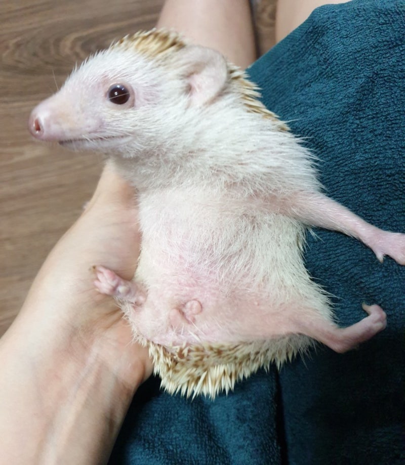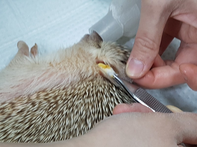 고슴도치는 마취를 하지 않는 한 몸에 이상이 있는지 육안으로 확인하는 것은 어렵습니다.수술 후 마취가 깨지 않은 틈을 타 고슴도치에 이상은 없는지 빠르게 확인해 보았습니다.