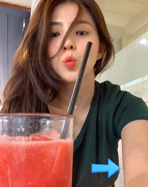 사진상에서 왼쪽의 한소희 씨 팔은 너무 예뻐 보이네요타투 제거 시술이 아주 잘 된 것 같아요.
