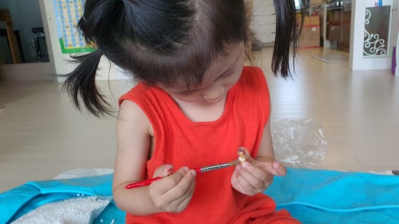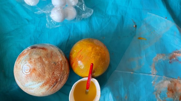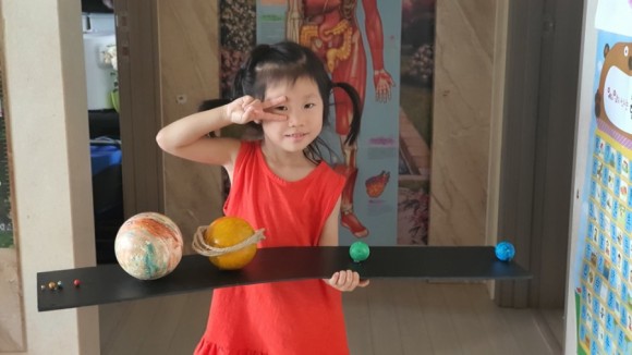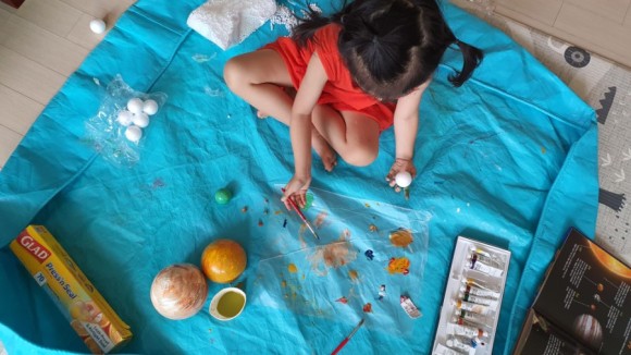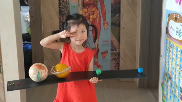 아이가 색을 칠하는 동안 행성을 보여주는 판과 글루건을 세팅해 놓는다.모빌로 할까 했는데… 붙일 데도 없고… 그냥 폼보드 재활용했어저번 행성 수업때 사용했던 폼보드~~