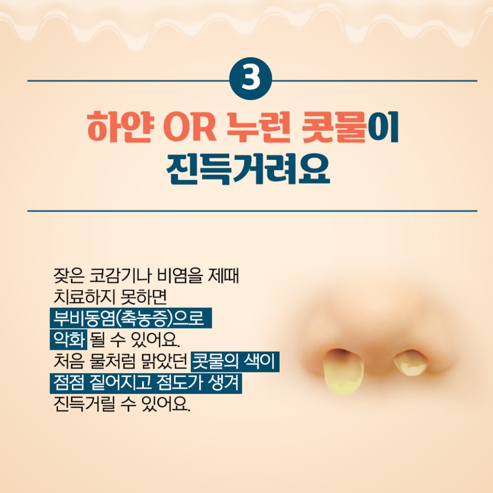 ③ 하얗거나 노란 콧물이 축축해요.