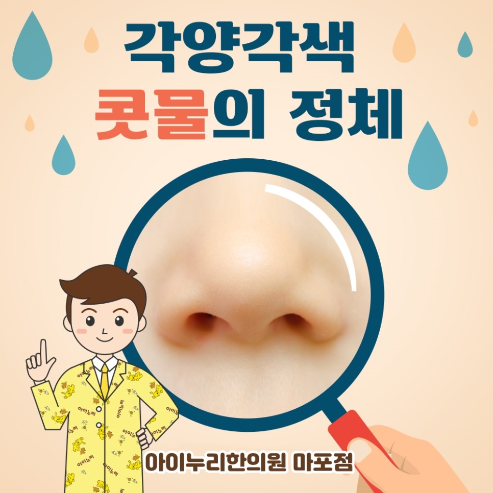 콧물을 코 점막에서 생성되는 점액입니다.평소 코 점막을 촉촉하게 하면서 먼지나 병원균 등 외부 이물질을 걸러내고 깨끗하게 유지하는 역할을 합니다.