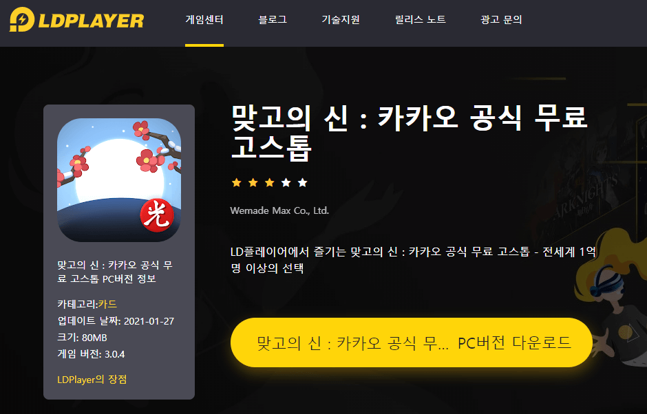 달고나의 신 카카오 공식 화투 앱을 설치한다.
