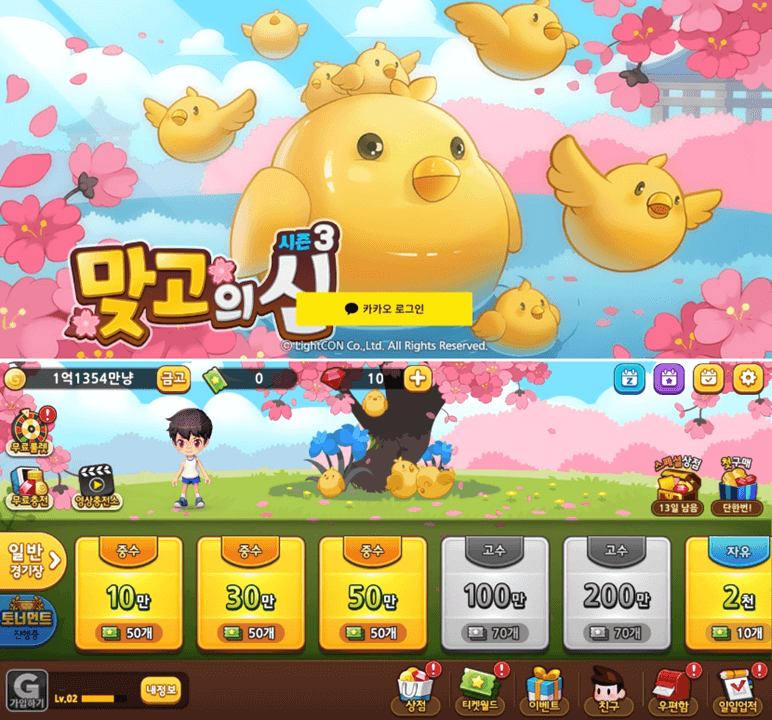 내가 생각하는 가장 큰 장점은 카카오 계정과 바로 연결해서 로그인할 수 있는 부분이라고 생각해요. 로그인이 정말 쉬워요. 그리고 카카오톡에 등록된 친구들을 초대해서 대결할 수 있는 장점도 있습니다.