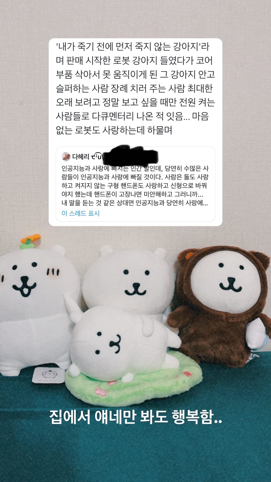 자기 전에 농담 곰이랑 얘기하고 잔다고… 마음의 위로가 된다자취하면 별것도 아닌 것 같아.