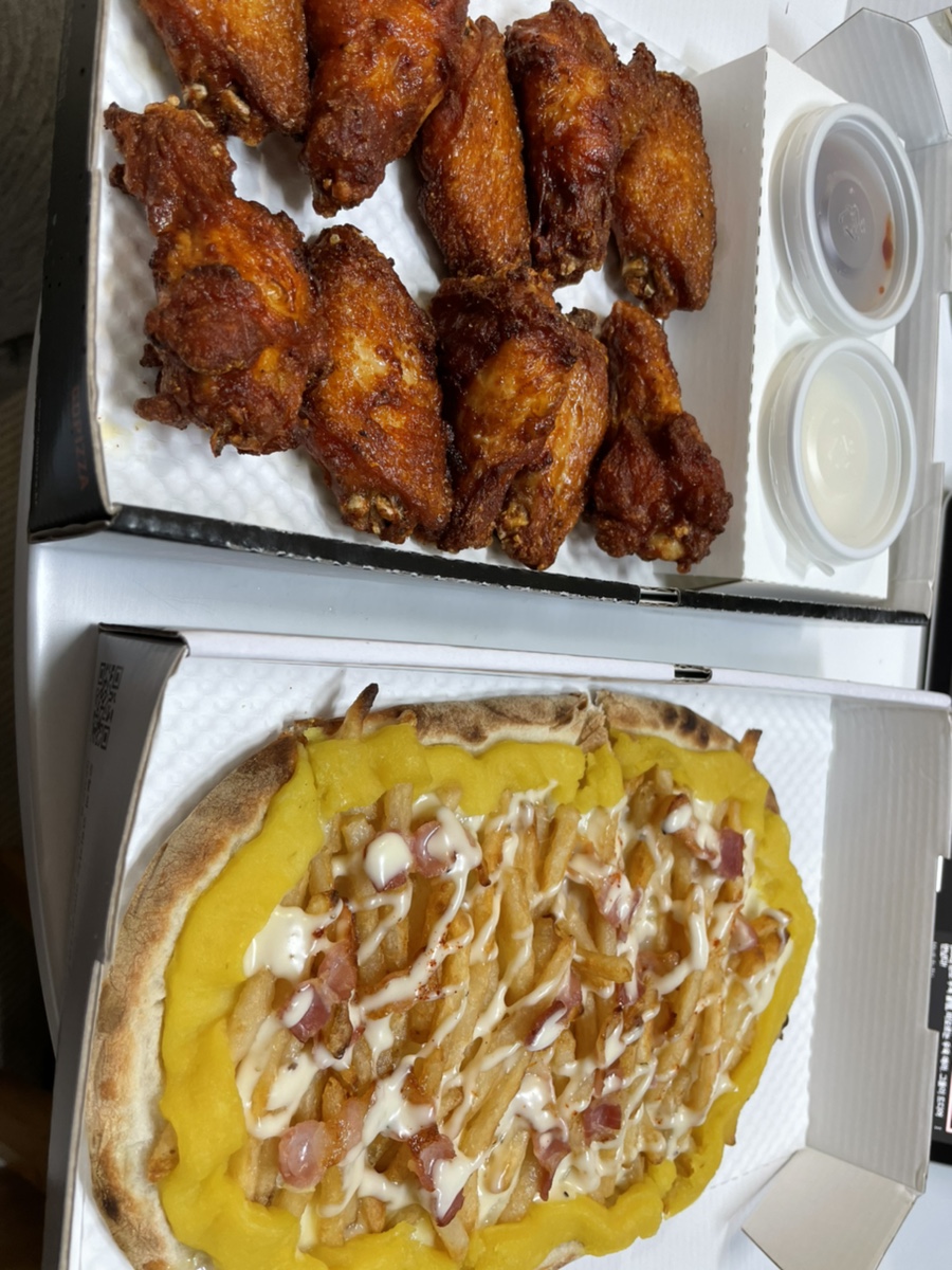 그리고 또 몸이 좋아지는 것 같아서.. 피자는 너무 먹고 싶고.. 그래서 이날 폭우가 쏟아지는 날이었는데 빗속에서 포장을 해와서 먹었다.