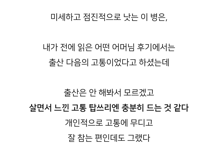 정말 나도 수술 꽤 많이 해봤는데 나도 고통탑 3개 안에 들어갈 것 같아. ●아픈 고통보다 괴로운 고통? 수술하고 나서 마취가 풀려서 겪는 고통과는 또 다른 아픔이었다..