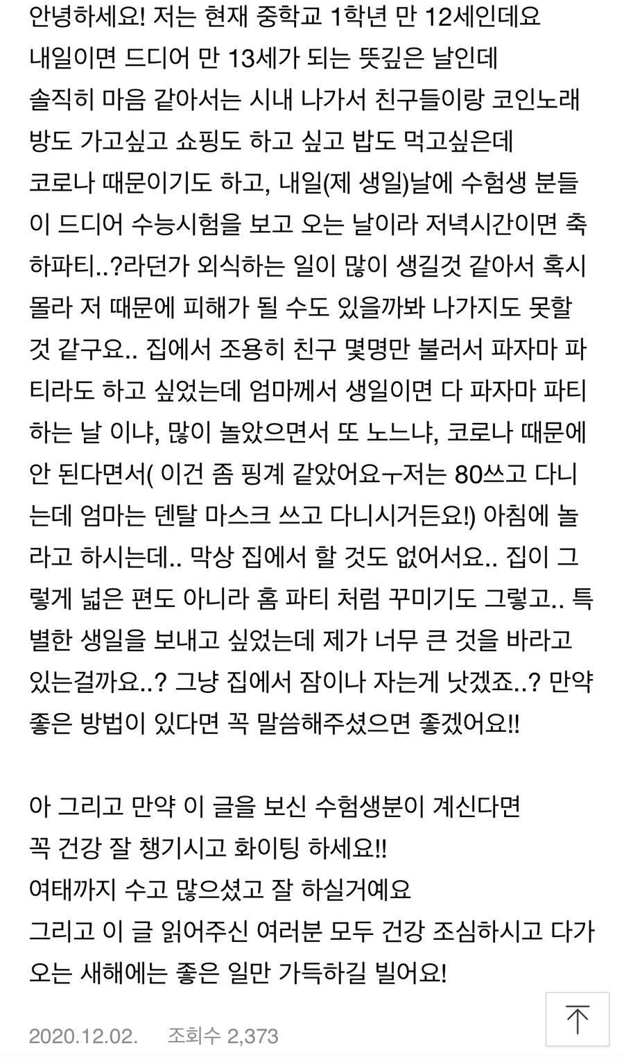 그리고 코로나 어떻게든 찾아본 귀여운 중학생 친구 지식인의 글 진짜 착하고 앞으로도 이렇게 컸으면 좋겠어. 덕분에 마음이 따뜻해졌다.