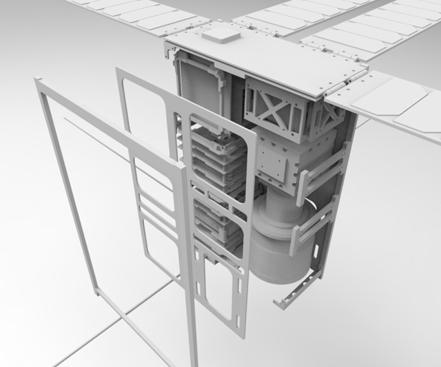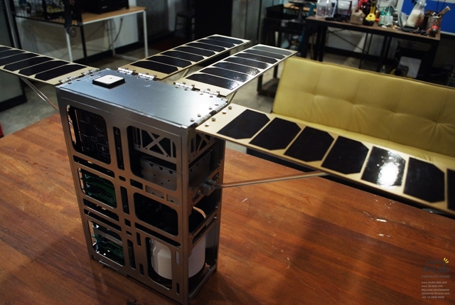 초소형 인공위성으로, 1:1 스케일 목업(모형)입니다.