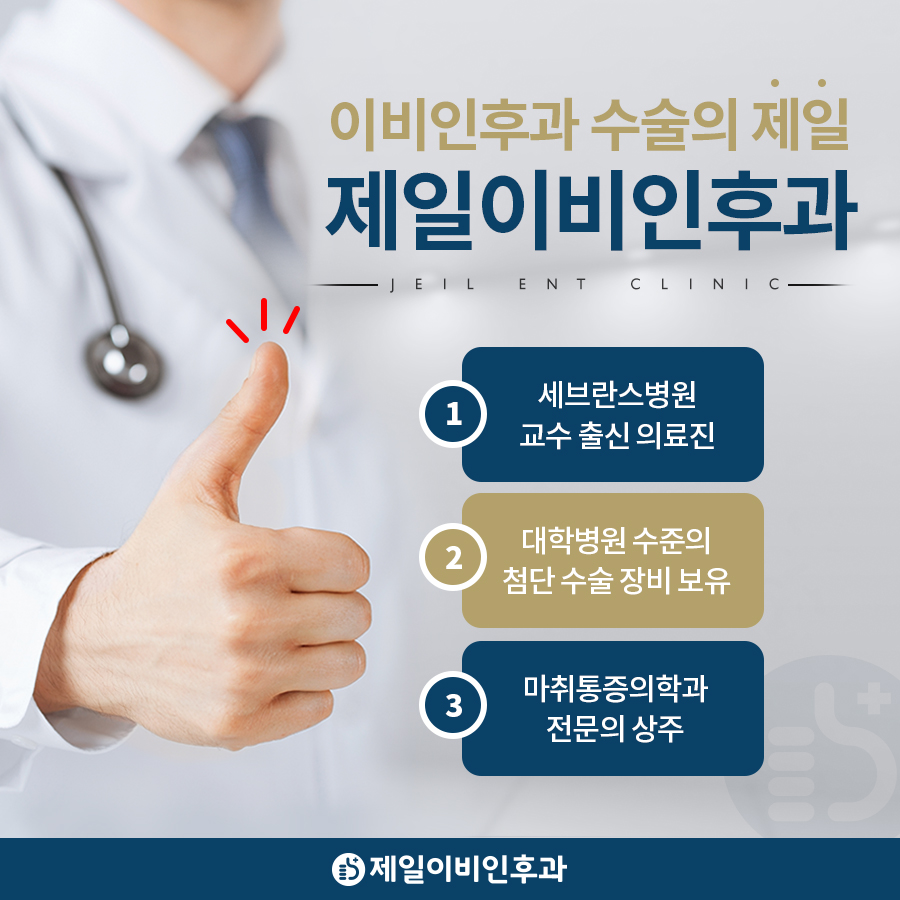 풍부한 노하우의 의료진으로 이루어진 제일이비인후과에서는 면밀한 진단과 충분한 상담을 통한 원스톱 편도염 치료를 받을 수 있습니다. 대학병원 수준의 첨단장비는 물론 넓고 쾌적한 진료환경에서 질 높은 양질의 의료서비스를 받을 수 있습니다.