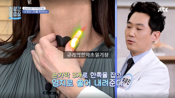 2. 혹 대표적인 갑상선암 증상으로 갑상선암을 유발하면 갑상선에서 혹이 닿는다는데요. 손가락으로 갑상선 부분에 혹이 제거되는지 만져보고 침을 삼킬 때 혹이 있는지 확인하는 것이 좋습니다. 집에서도 쉽게 할 수 있는 방법으로 한번 따라해 보셔도 돼요. 그런데 혹의 크기가 2cm 이상일 때 확인할 수 있는 방법으로 갑상선암의 초기 혹이 작은 경우에는 쉽게 찾기 어렵다고 합니다. 또한 갑상선 주변의 연골과 같은 구조물 때문에 정상적인 구조물을 혹으로 오인할 수 있으므로 일단! 갑상선암의 초기증상이 의심되면 전문의의 진료와 초음파검사를 꼭! 받아보세요!