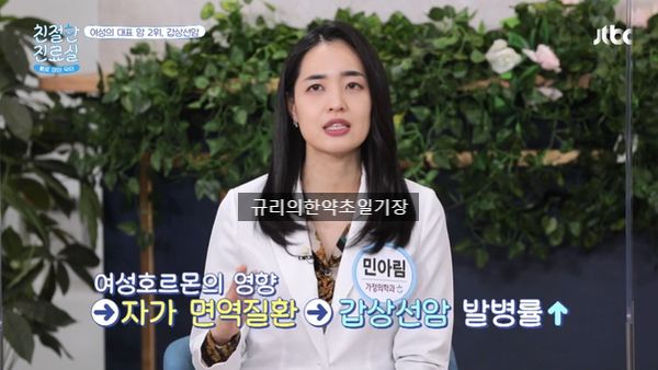 이러한 갑상선에 암이 생긴 암을 갑상선암이라고 하며, 다른 암에 비해 생존율이 높기 때문에 선량한 암이라고도 불립니다. 그래도! 암은 암이라는 걸 잊지 마세요! 여성 암 중 2위로 여성에서 남성보다 4배 많이 발생하고 특히 50대 여성에게서 많이 발생하기 때문에 중년 여성이라면 더욱 주의해야 합니다. 그래서 오늘은 초기에 발견할 수 있는 갑상선암의 증상과 갑상선암의 원인을 살펴봅시다!갑상선암의 원인 1. 여성호르몬의 영향- 남성보다 여성 환자가 많은 이유는 남성에 비해 여성이 갑상선 기저질환에 더 취약하기 때문입니다. 또한 여성호르몬의 영향으로 면역세포가 정상세포를 공격하는 자가면역질환이 유발되어 갑상선암 초기증상 발병률이 증가한다고 합니다.