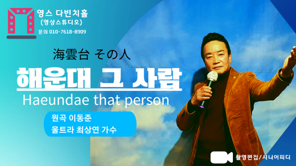 노래 영상을 샘플로 촬영하고 영상 제작을 했습니다 아이디어가 다시 올라가면 바로 실행에 옮기는 모습의 박세령 가수님은 정말 열정의 덩어리입니다. 배관기술자로 현업에서 활약하고 있는 최강남 최상용 가수에게 “울트라 최상용 가수”라는 브랜드 네이밍을 해줬더니 너무 좋아하더군요. 영상 썸네일과 편집 영상을 소개합니다 이미지를 클릭하면 샘플 영상을 보실 수 있습니다.