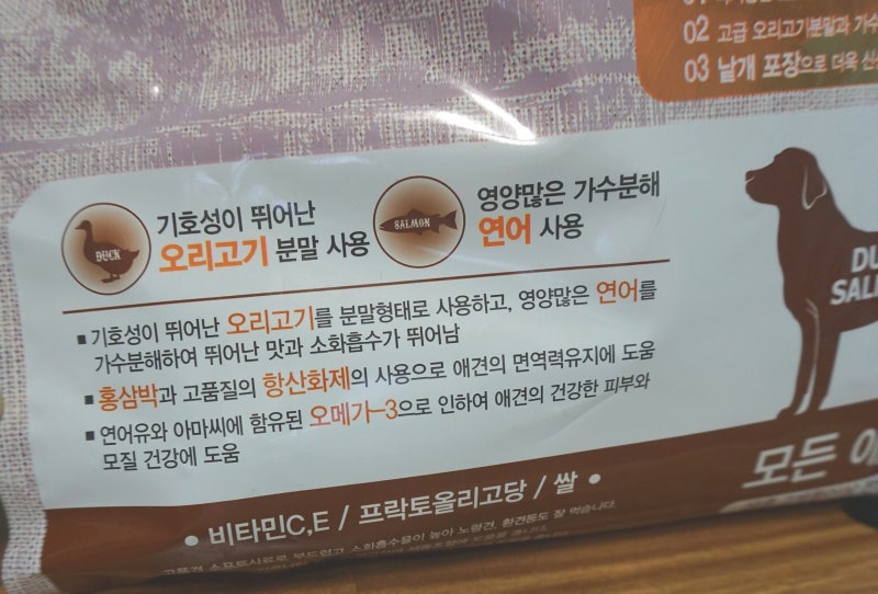 베이스 푸드 포 어덜트견 가수분해 사료의 주요 단백질원은 오리고기로 풍부한 불포화지방산은 항염증과 혈류 개선 등에 도움을 주고 있는데 오리고기를 좋아하는 두 사람에게 최적의 맘마입니다.