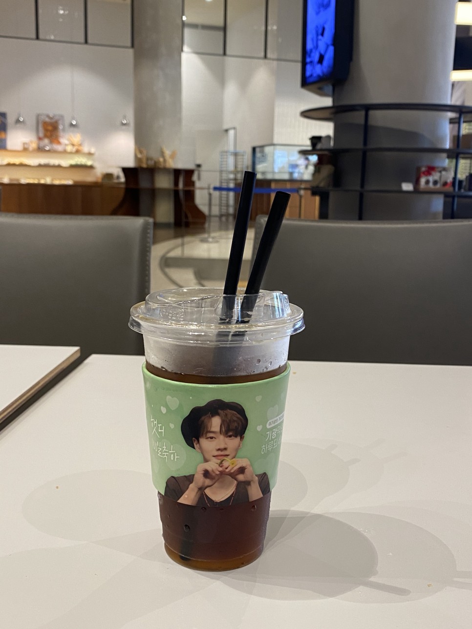 컵홀더는 KBS 라디오를 진행하는 하이라이트 이기광의 생일 축하 홀더. 어색하다.