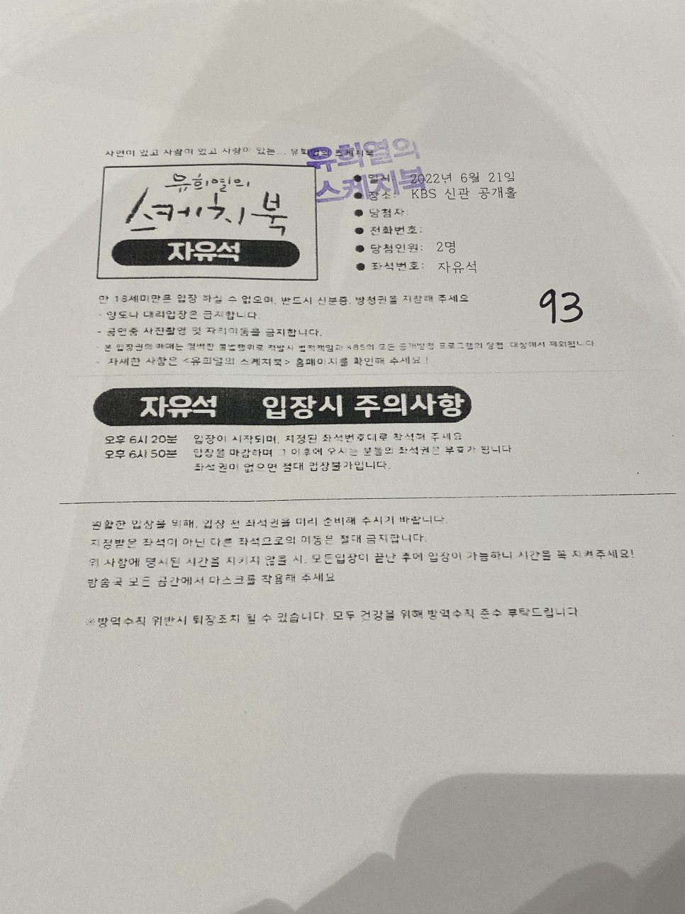 유스케 방청권 종이가 순서가 되면 신분증 확인 후