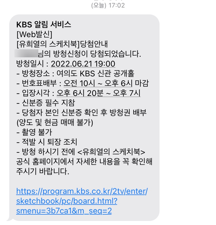 유희열의 스케치북 방청 자유석 당첨 인증