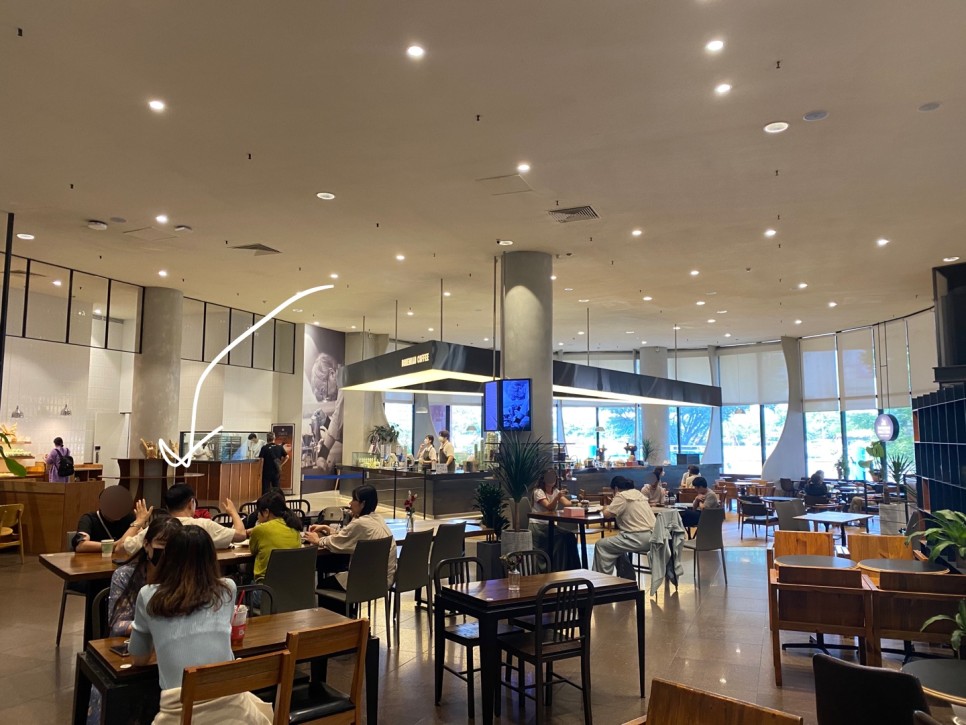 일반인도 이용할 수 있는 넓은 카페와 화장실이 있었다.