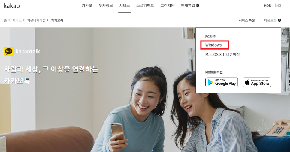 카카오톡 카카오톡 PC버전 설치를 먼저 여러분이 사용하고 있는 컴퓨터나 노트북 환경에 카카오톡 PC버전 프로그램이 설치되어 있어야 되겠죠? 물론 이미 설치되어 있을 텐데요. 만약 설치되지 않았다면 카카오톡 공식홈페이지에서 윈도우 또는 MacOS버전을 설치할 수 있습니다~
