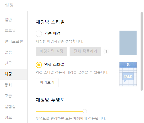 배경화면의 엑셀을 변경하는 카카오톡 PC버전
