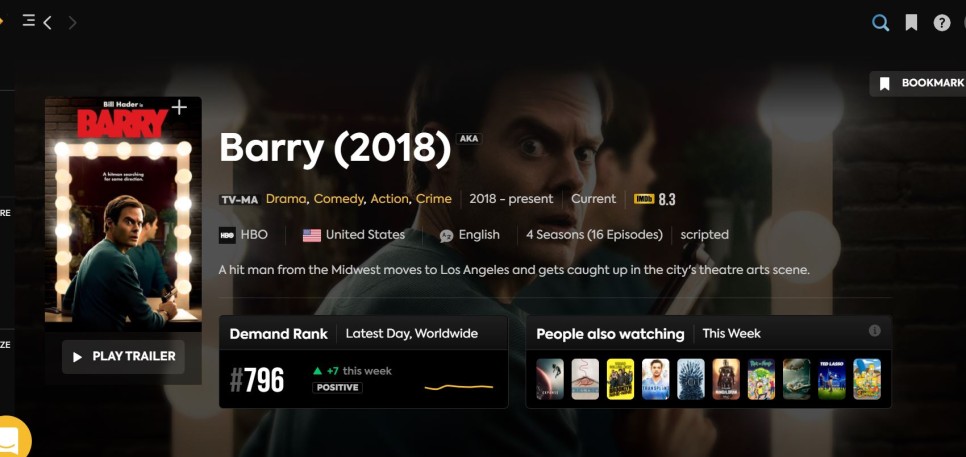배리와 친구가 되어 다양한 관계를 형성하는 여배우 샐리 리드(Sally Reed, 출연 RAH GOLDBERG)의 매력 또한 드라마에서 느낄 수 있다. 다른 사람이 추천하는 유명한 미드에서는 느낄 수 없는 감동이 있다. 총 8편의 에피소드로 구성되어 있어 웨이브를 통해 한번에 정리해 보시기 좋습니다.