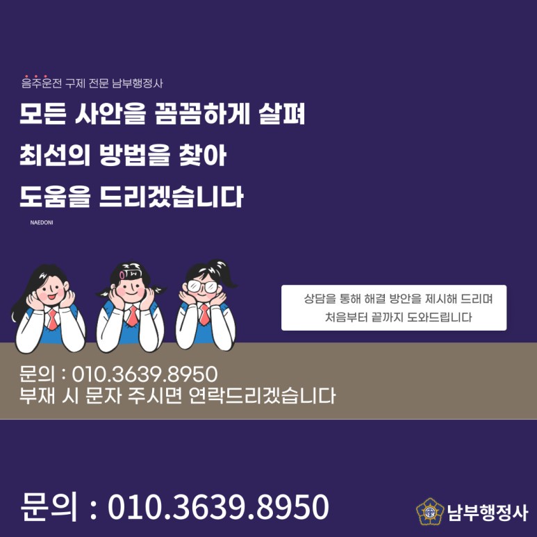 이러한 모든 상황과 사정, 운전의 필요성, 운전경력, 벌점 등 전체적인 사안을 면밀히 검토하고 양형자료 구성과 이의신청 행정심판을 하게 되며,