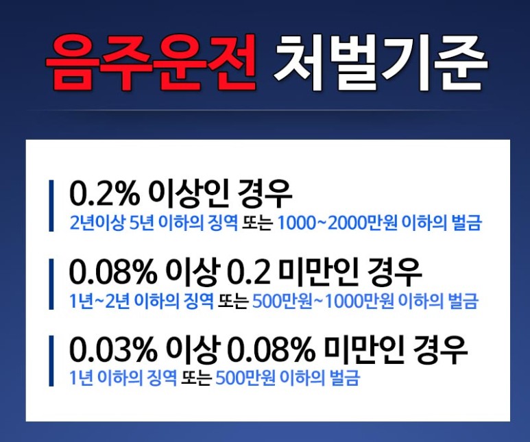 이러한 사회적 요구에 따라 음주운전 단속기준을 2019년부터 변경하고 있으나, 면허정지의 경우 혈중알코올농도가 0.05%에서 0.03%로 변경되고, 면허취소의 경우 혈중알코올농도 0.1%이상에서 0.08%로 강화하여 음주운전에 대한 엄중한 처벌을 원칙으로 하고 있습니다.