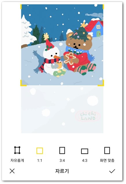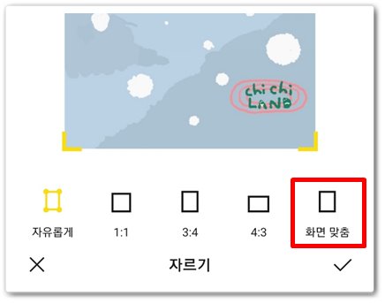 크기 조절의 경우 좌측에 표시해 둔 아이콘을 클릭하면 [자유롭게 1:1, 3:4, 4:3 화면을 맞춘다]이렇게모두4개의선택지가나옵니다.