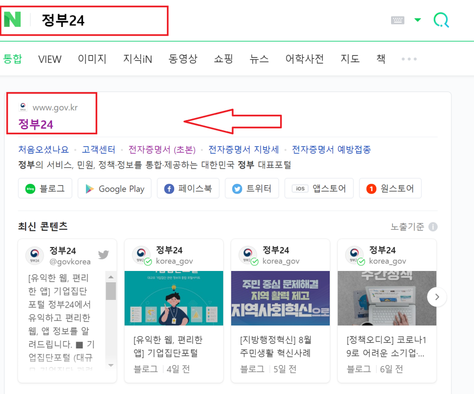 네이버에 ‘정부24’ 검색!