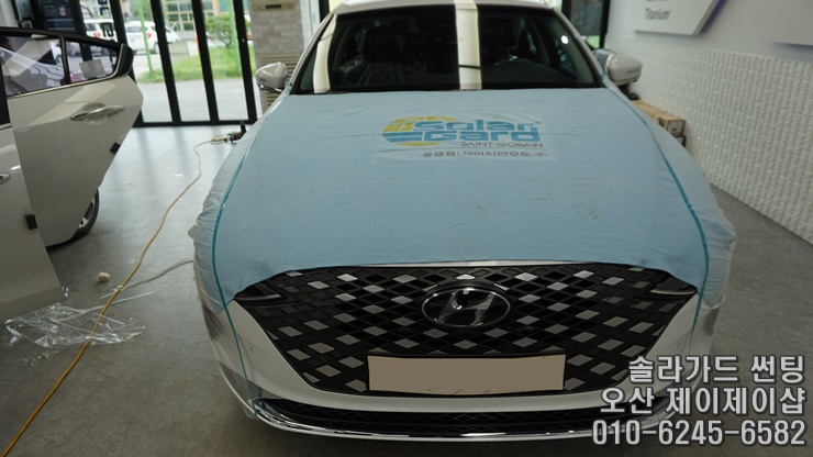 썬팅 작업시 혹시라도 생길 수 있는 차체 손상을 예방하기 위해 실외/실내를 꼼꼼히 마스킹한 후 솔라가드 선팅 중 가장 높은 성능을 가진 새턴으로 전체 선팅작업되었습니다.