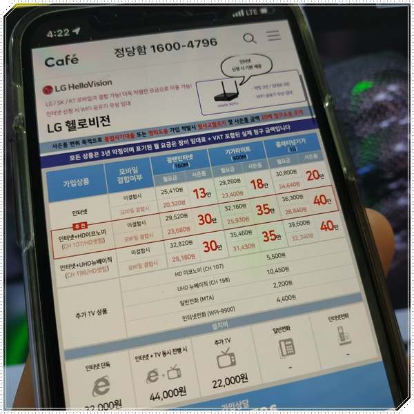 저는 KT 스마트폰을 쓰다가 KT 인터넷에 가입을 했는데